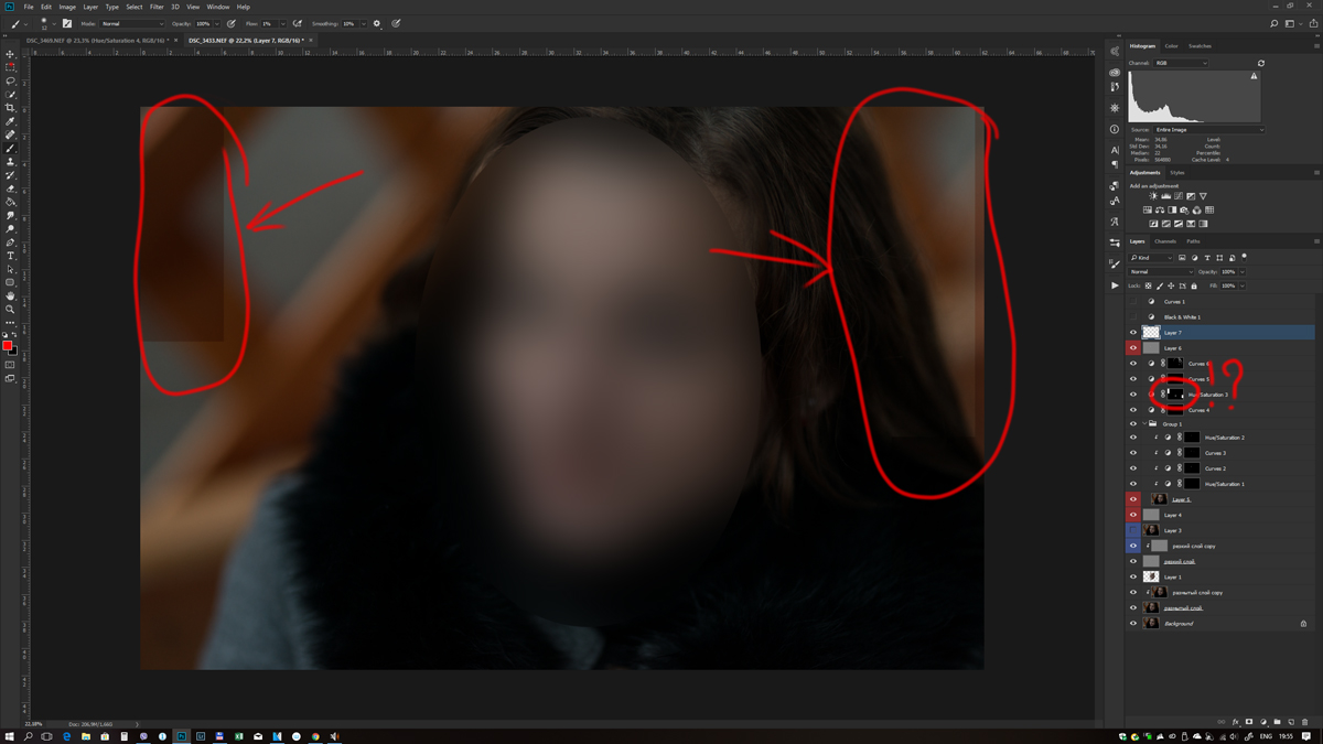 Комментарий к файлу: Стрелками указано проблемное место и на слое также видно.