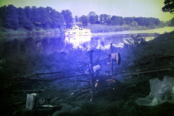 Так что срочно поменяю тему (а то добрый Rico вдруг и вправду напишет, что он делал в ТОТ САМЫЙ день, а заодно и меня спровоцирует сознаться...). Так что еще архив. 1987 год. Водный поход по Неману. Вечер. Место, где Неман широко разлился. Остановились для ночевки. И тут пришли... нет, не девчонки (свои были)... коровы... чисто искупнуться и водички попить...