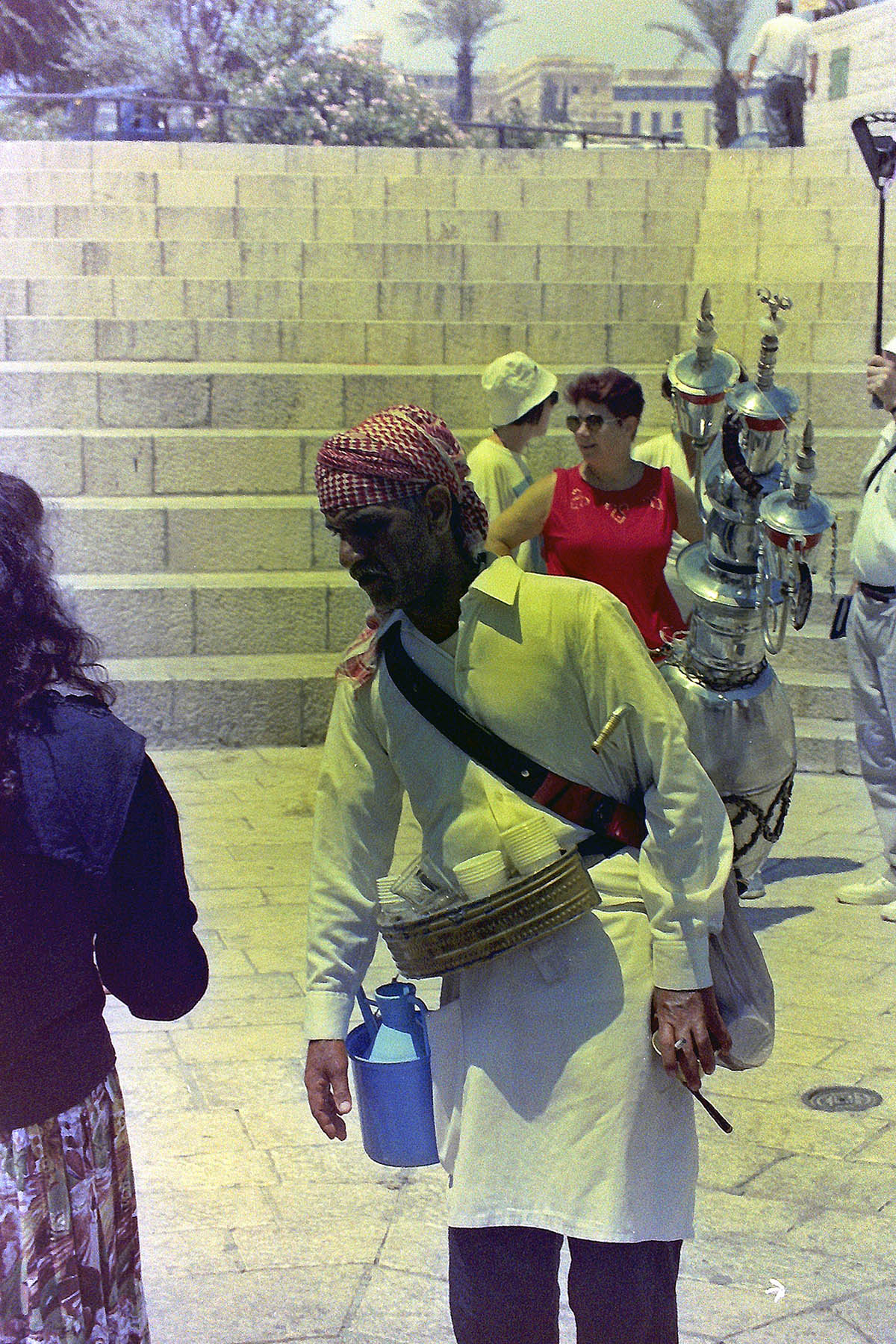 Комментарий к файлу: Иерусалим. Продавец чая в Старом городе. Конструкция у него за спиной - чайник. Краник - под рукой. Кланяется - и чай наливается...