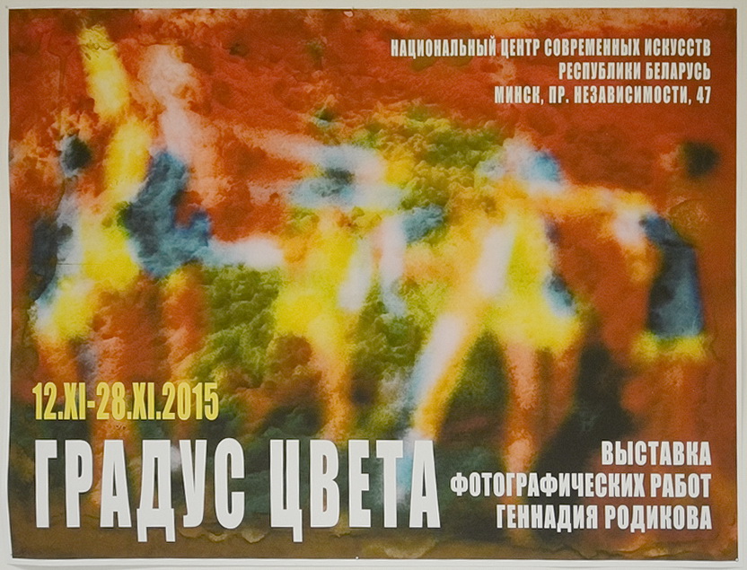12 ноября 2015 года в 18:00 в Национальном центре современных искусств Республики Беларусь (пр. Независимости, 47) состоялось открытие выставки фотографических работ Геннадия Родикова «ГРАДУС ЦВЕТА».