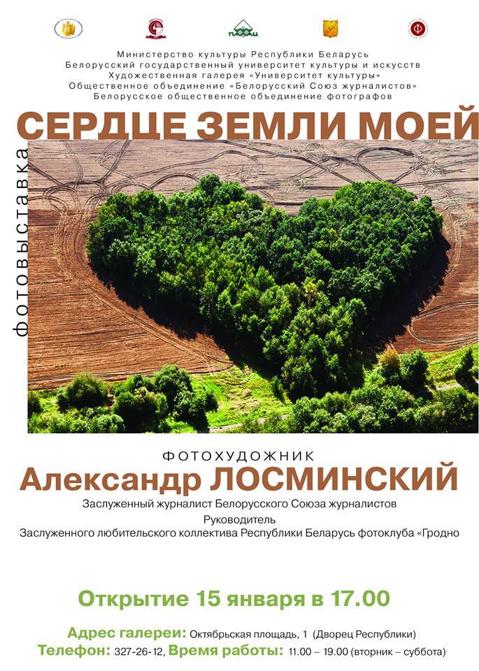 С 15 по 30 января в художественной галерее «Университет культуры» (Дворец Республики представлена фотовыставка известного белорусского фотографа Александра Лосминского «Сердце земли моей».