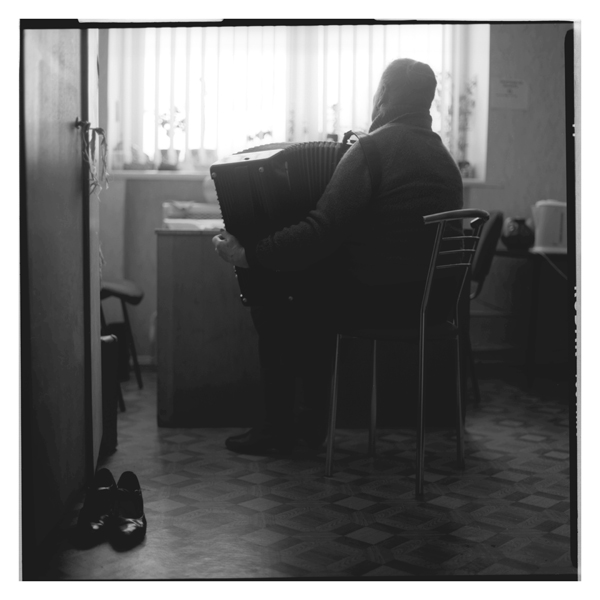 Уже начав снимать серию внутри театра, я вдруг понял, что мне хочется показать соседство двух реальностей, на стыке которых происходит перелом сознания, и мир перестает быть четкой продуманной человеком микросхемой. Этого и невозможно было избежать в месте, в одном углу которого на стене в одиночестве висит отстраненная от спектаклей безрукая кукла с жуткими человеческими глазами, а в другом – старательно выводит на баяне ноты старинных песен пожилая работница театра, ностальгирующая о временах таперства. В чемоданах вместе с исписанными листами грустит, только что отыгравший свою роль, Пушкин на колесиках, а главный режиссер запросто надевает крылья и, вдруг, начинает напоминать то ли архангела, то ли сирина. В скрипучих шкафах в тесноте хранятся жуткие гримасы троллей, готовая уплыть в мальчишеские мечты шхуна, а на дверцах свет рисует совсем живые отражения искусственных птиц. Репортажа о конкретном театре не получилось. И к лучшему. Документ размылся, окрасился густотой эмоций, метафор, солнечной пыли и превратился в лирический рассказ о параллельных мирах, присутствие которых бывает так трудно ощутить в городской суете взрослой жизни.
