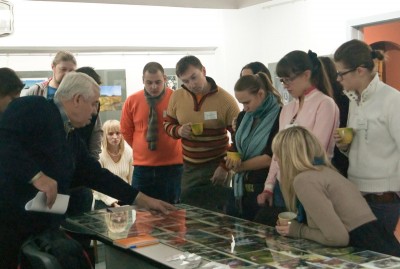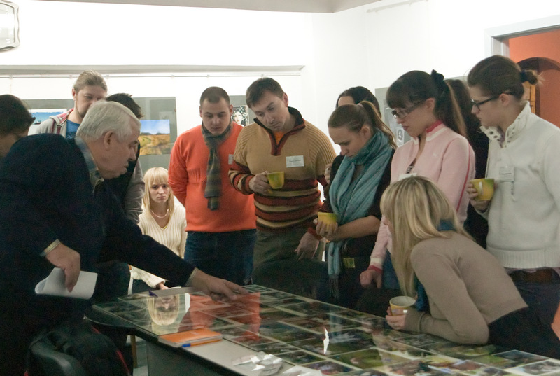 Евгений Козюля после своего дня рождения, как ни в чём не бывало, готовясь к очередной встрече со студийцами «МiНСК-2010», опять создал незабываемую выставку (ради одного занятия! по истории и авторам НФК МiНСК). Заметно, что даже Юрий Васильев, которого удивить почти невозможно, с огромным интересом изучал классное «наглядное пособие» созданное Евгением Карповичем. Браво, ЕК!!