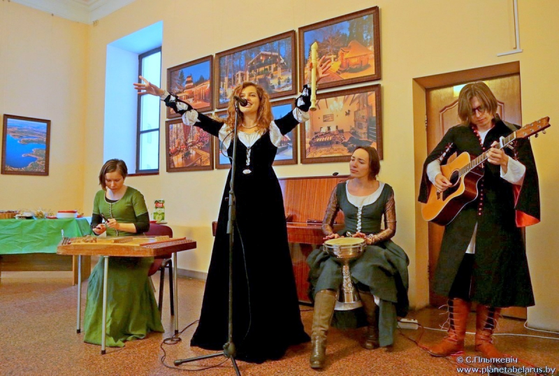 Прекрасным фоном стало выступление Екатерины Водоносовой со своим ансамблем, которая представила современную интерпретацию старинной белорусской музыки.