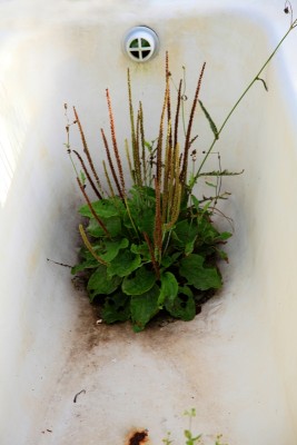 Что вижу, то и фотографирую, поэтому продолжаю дачную серию снимков. Последние дни августа окрашиваются в золотистый цвет близкой уже осени. Даже соседский кот Масяня порыжел в тон первым опавшим с вишни листьям. Но особое впечатление произвел кустик подорожника, пробивший за лето путь к солнцу через отверстие в старой выброшенной ванне.