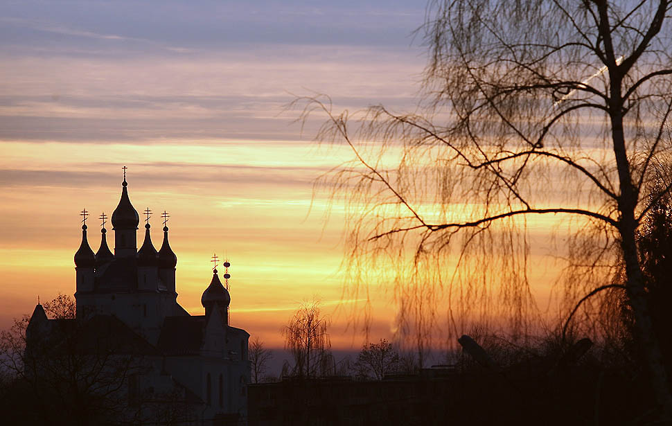 Комментарий к файлу: Церковь на фоне изумительного заката в белорусском городке Слоним, в 200 км от Минска. (ALEXEY GROMOV / AFP / Getty Images)