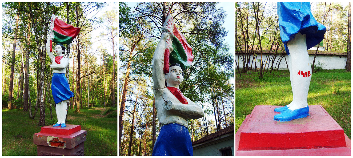 старая статуя советской пионерки, у которой отвалилась кисть и кусочек древка... ее просто перекрасили на современный манер и присвоили инвентарный номер...