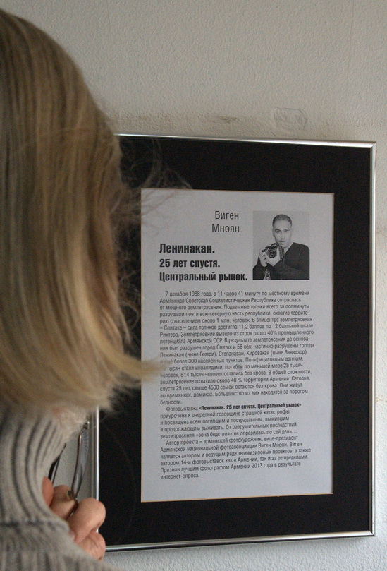 Фотовыставка «Ленинакан. 25 лет спустя. Центральный рынок» приурочена к очередной годовщине страшной катастрофы и посвящена всем погибшим и пострадавшим, выжившим и продолжающим выживать. От разрушительных последствий землетрясения «зона бедствия» не оправилась по сей день…