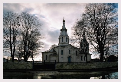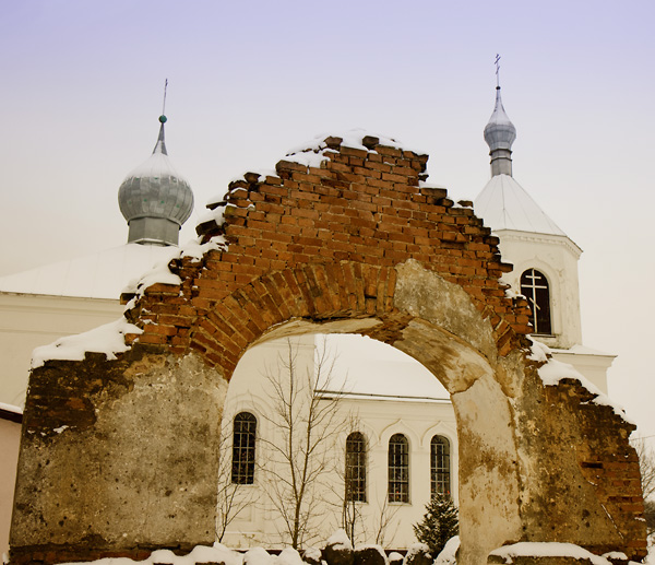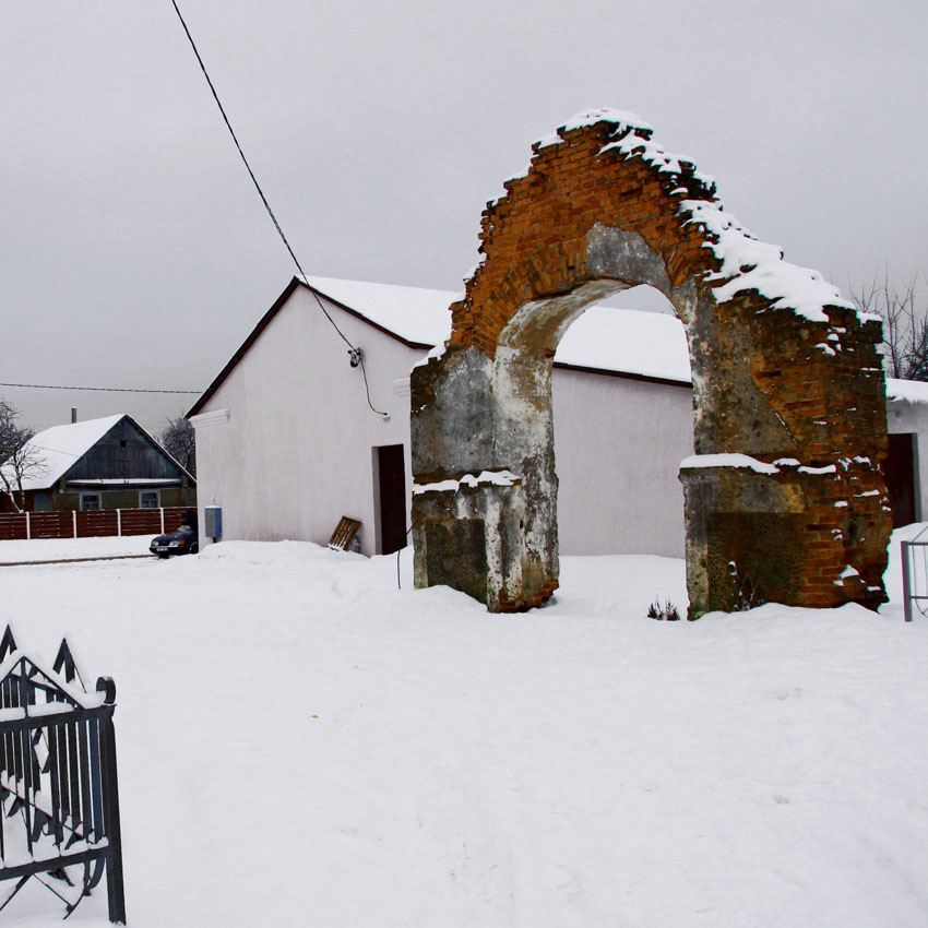 Посмотрев случайно не стертый на GPRS-навигаторе наш длинный маршрут,могу с большой долей уверенности сказать,что это местечко Городок Молодечненского района и Троицкая церковь 19 века с брамой.