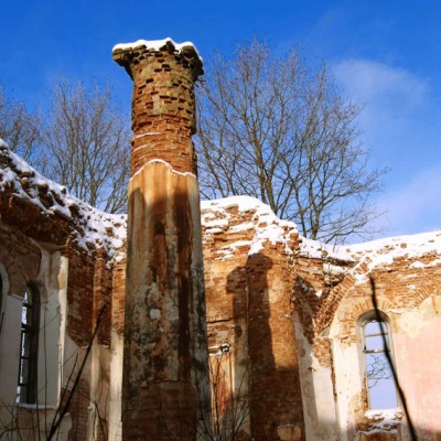 К двухэтажному дворцу, спрятавшемуся в красивом парке, ведет аллея из клёнов и лип. Раньше дорога была замощена брусчаткой. Вторая аллея спускается к живописным берегам реки Волма.