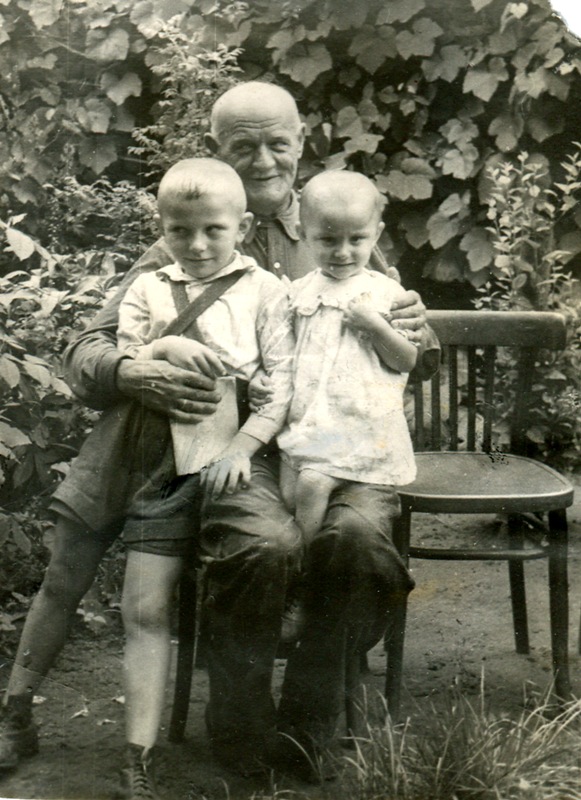 Фото 2: 1953 год. Я с братом Костиком и дедушкой Жоржем в саду ДОМа 13.