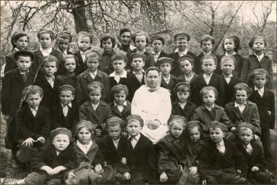 Снимок был сделан приглашенным из местного фотоателье фотографом весной 1959 года. На фото я сижу слева от воспитательницы в белом халате. Момент этой фотосъемки хорошо помню.