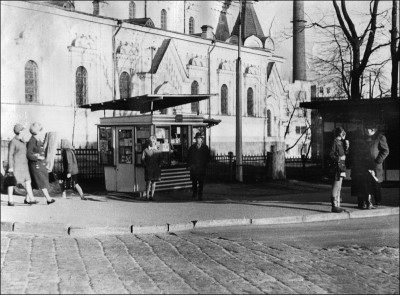 Фото 5: Покровский собор на ул. Ожешко весной 1971 года. На фото справа видна пивнушка, на заднем плане - труба городской ТЭЦ.