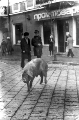 Фото 7: По ул. Советской бегала грязная свинья, а когда я ее сфотографировала, некоторые прохожие стали возмущаться моими действиями и потребовали, чтобы я засветила плёнку с антисоветским кадром. Мне удалось от этих бдительных граждан сбежать, потому что они ринулись ловить свинью, которая вдруг резво умчалась в сторону Советской площади.
