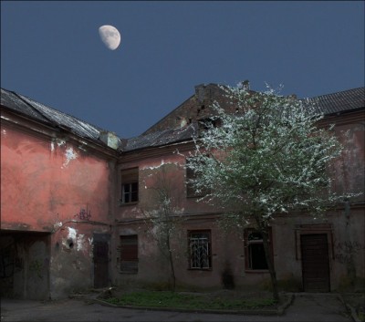 Инна, поискала луну в своих архивах... Нашла эту, весеннюю, которая фонарем освещает гродненский дворик, уже брошенный его жителями.