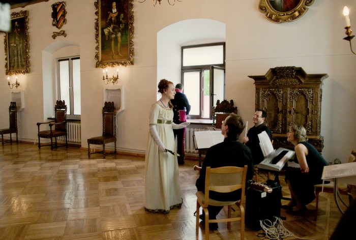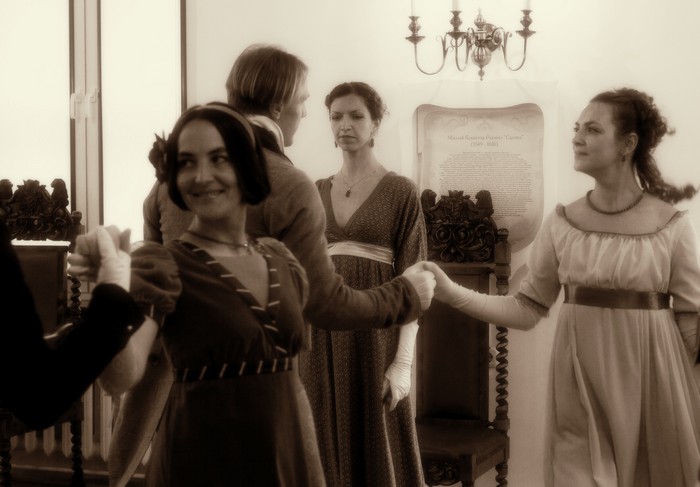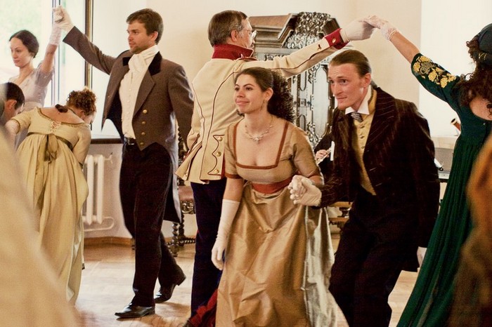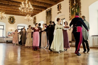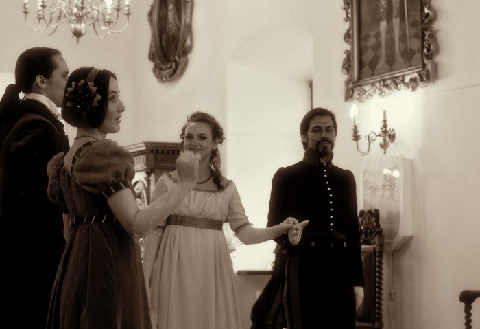 И Пьер Безухов, и Андрей Болконский, и Наташа Ростова - все на бале. Костюмы, конечно, соответсвуют обстановке. Несвиж радует!