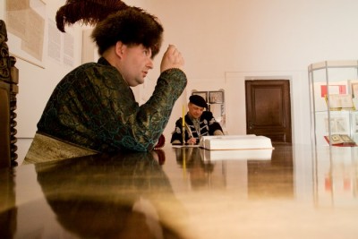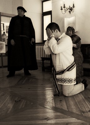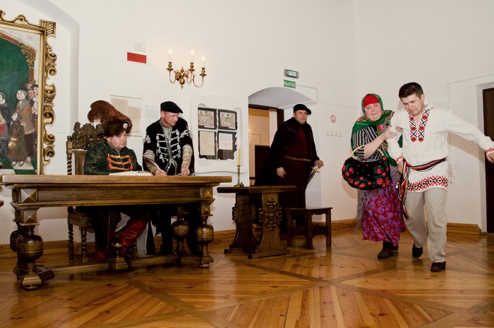 В перерыве между выступлениями сотрудники музея -заповедника "Несвиж" показали в зале судебных заседаний мини-спектакль .Рассматривалась судебное дело о подделке денег Якубом Колошей ,учеником доминиканского монастыря в октябре 1810 года в Несвиже.