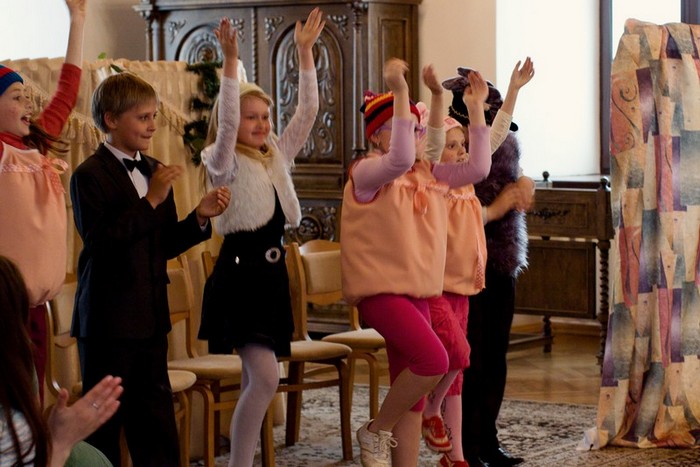И в качестве подарка-постановка детского театра Ирины Перцовой "Три поросенка"
