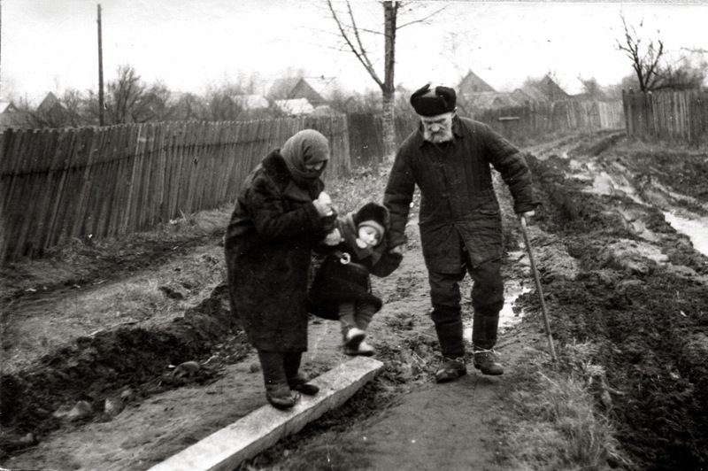 Ну, вот, без архивного фото не обошлось. На первом фото осень 1982 года, привезли в Букчу своего старшего сына (ему два годика) к бабушке и дедушке. Они с ним пробираются по улице "Партизанской". На втором фото эта же улица в 2010 году.