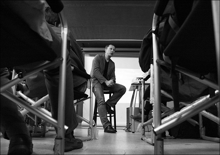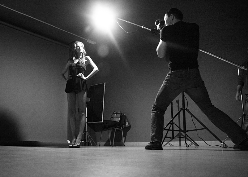я предложил Олегу такой эксперимент, на что он охотно согласился и предложил взять камеру более низкого класса... Оля Шукайло любезно предоставила свой Canon 400D с китовым объективом! результат съемки выложим чуть позже, когда Олег вернется домой и подготовит фотографии по итогам мастер-класса... но уже могу сказать, что качество снимка не уступает! понятное дело, что с Хасселя можно напечатать другие форматы, вытащить из рава совсем убитый кадр и т.д... но если говорить о самом кадре в размерах доступных для 400-ки, то разницы никакой нету...