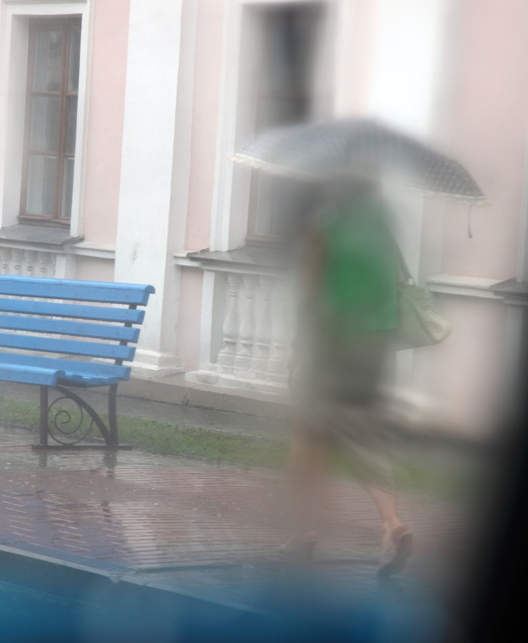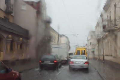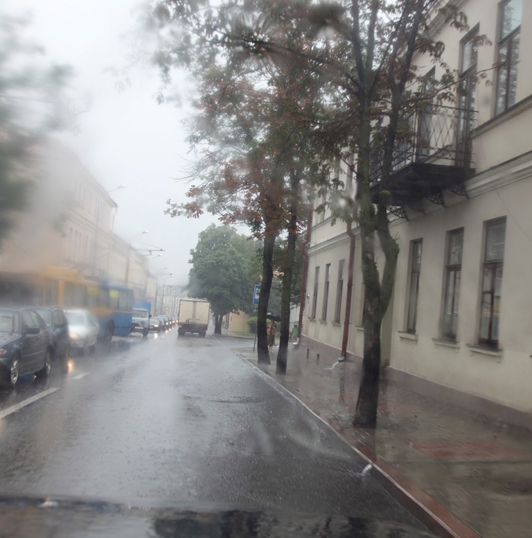 Возвращались сегодня утром с дачи и на Румлёвском мосту попали под ливень. Сделала серию фотографий улиц нашего города через ветровое стекло автомобиля.