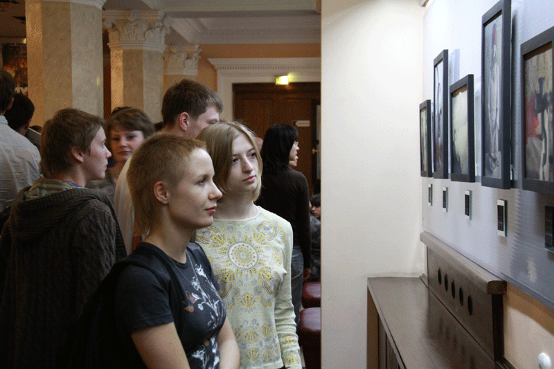 Фотографии понравились не все... Работы вывешенные на левой стене (по левой стороне) впечатлили и понравились больше. Больше, чем фотографии понравилась группа «Мамкины бусы» *YAHOO* Очень понравились они... *THUMBS UP*