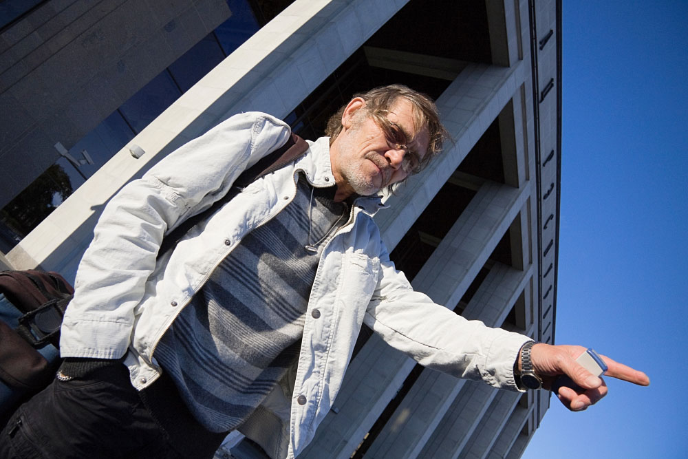 В руке вместо кепки - мобильник, а указующий перст направлял всех приходящих... типа, куда им нужно идти... :-)