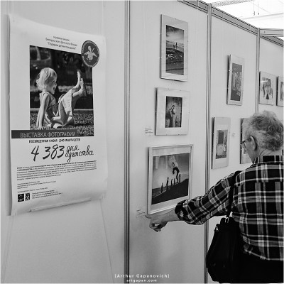 В рамках акции «Подарим детям праздник!» состоялся конкурс фотографии «4 383 ДНЯ ДЕТСТВА». Белорусский детский фонд объявил республиканский конкурс фотографии на тему детства. Около 1 500 фотографий было прислано на конкурс не только из Беларуси, но и из стран СНГ, Европы. Около 200 фотографов приняло в нем участие. Мир детства неповторим и удивителен. Но, к сожалению, не всегда радостен и беззаботен. Именно для того, чтобы еще раз это напомнить всем взрослым, и был организован конкурс «4 383 ДНЯ ДЕТСТВА». Победителями его стали 10 фотографов. А в выставочной экспозиции учавствуют 33 фотографа.