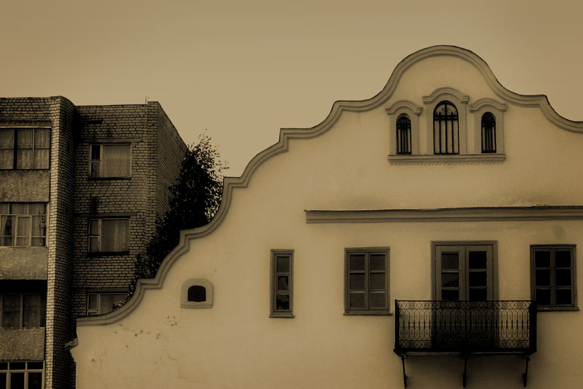 №0 домик на рынке с барочным фасадом,фрагмент(1721),говорят, что такого типа домиками была окружена Центральная площадь