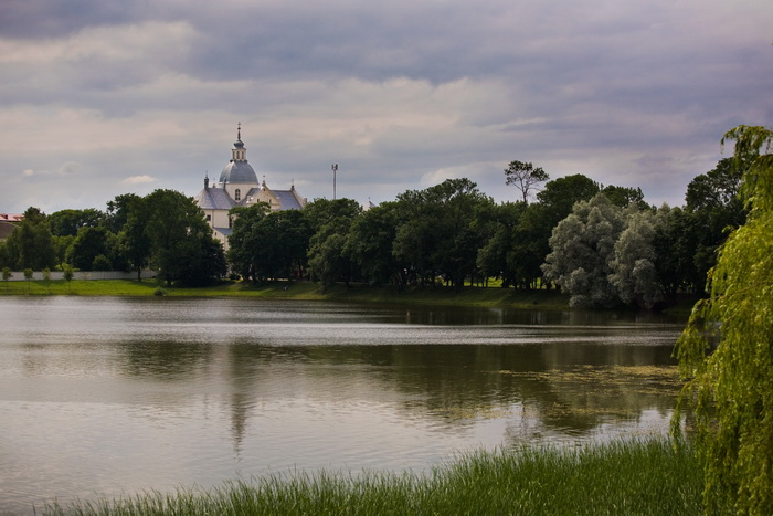 На первом снимке у Альфреда вид на Фарный костел Божьего тела построенныйВ 1584-1593 годах на месте деревянного кальвинистского собора по проекту итальянца Я.Бернандони, который стал символом победы католицизма над протестантизмом. Вид со сторны озера. 02 и 03 фотографии знаменитого средневекового замка Радзивилов в процессе реставрации. 04 - кусочек парка возле Замка.