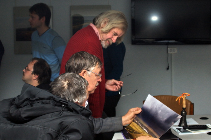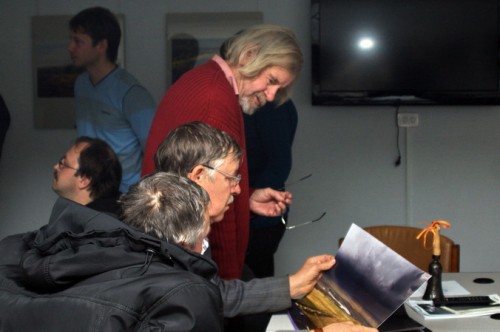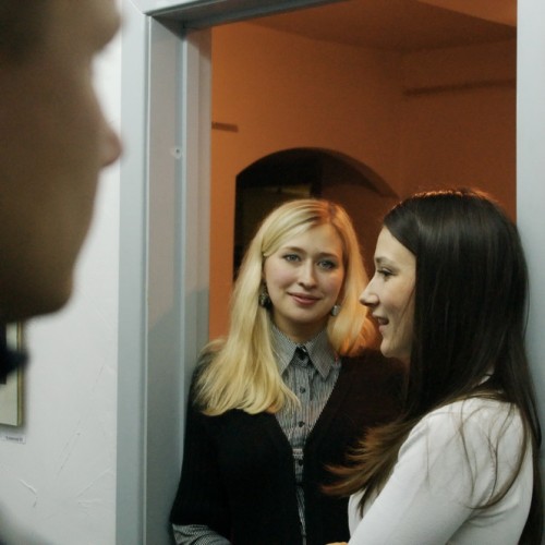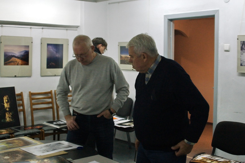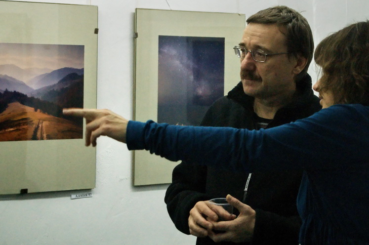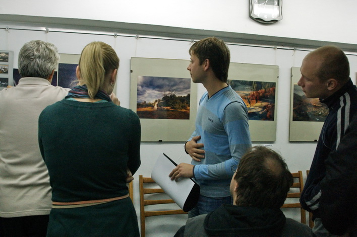 Подготовительная работа к отчётной выставке клуба на подтверждение звания «Народный…» в интерьере выставки Андрея Радюка и Алексея Угальникова, и последние посетители на этой выставке.
