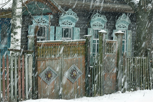 Фотография с афиши «Народная архитектура белорусской деревни в фотографиях Владимира Шарникова»