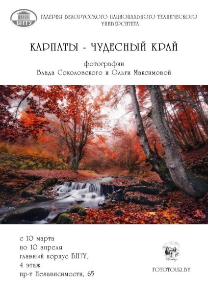 с 4 марта 2014 года в галерее 4 этаж главного корпуса Белорусского Национального Технического Университета открылась выставка фотографий Влада Соколовского и Ольги Маскимовой "Карпаты - чудесный край".