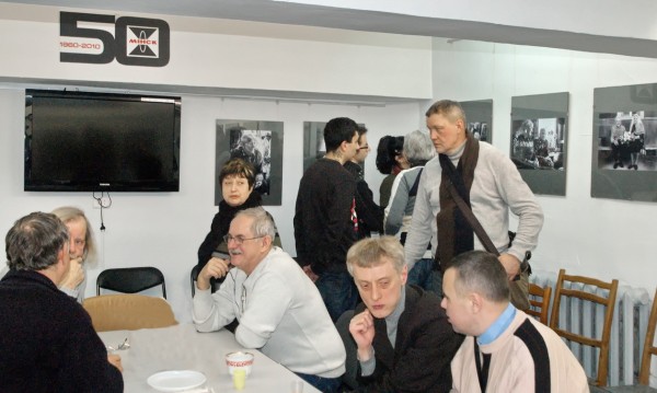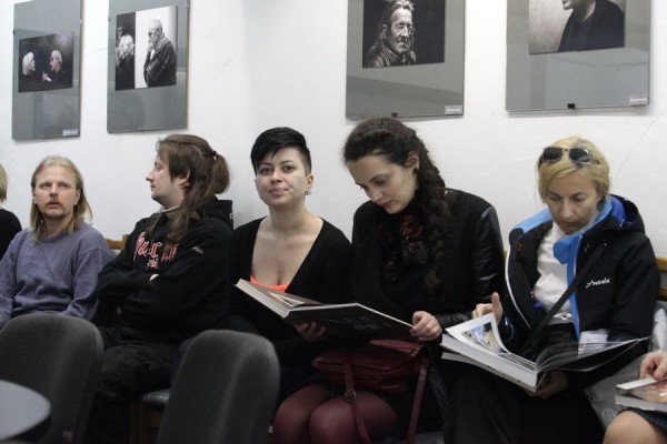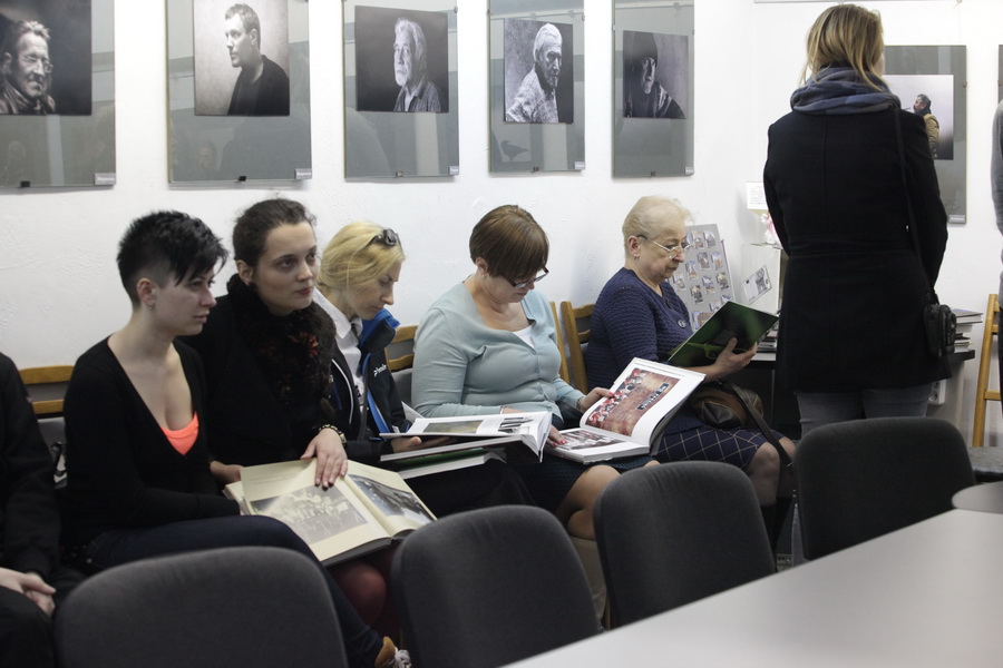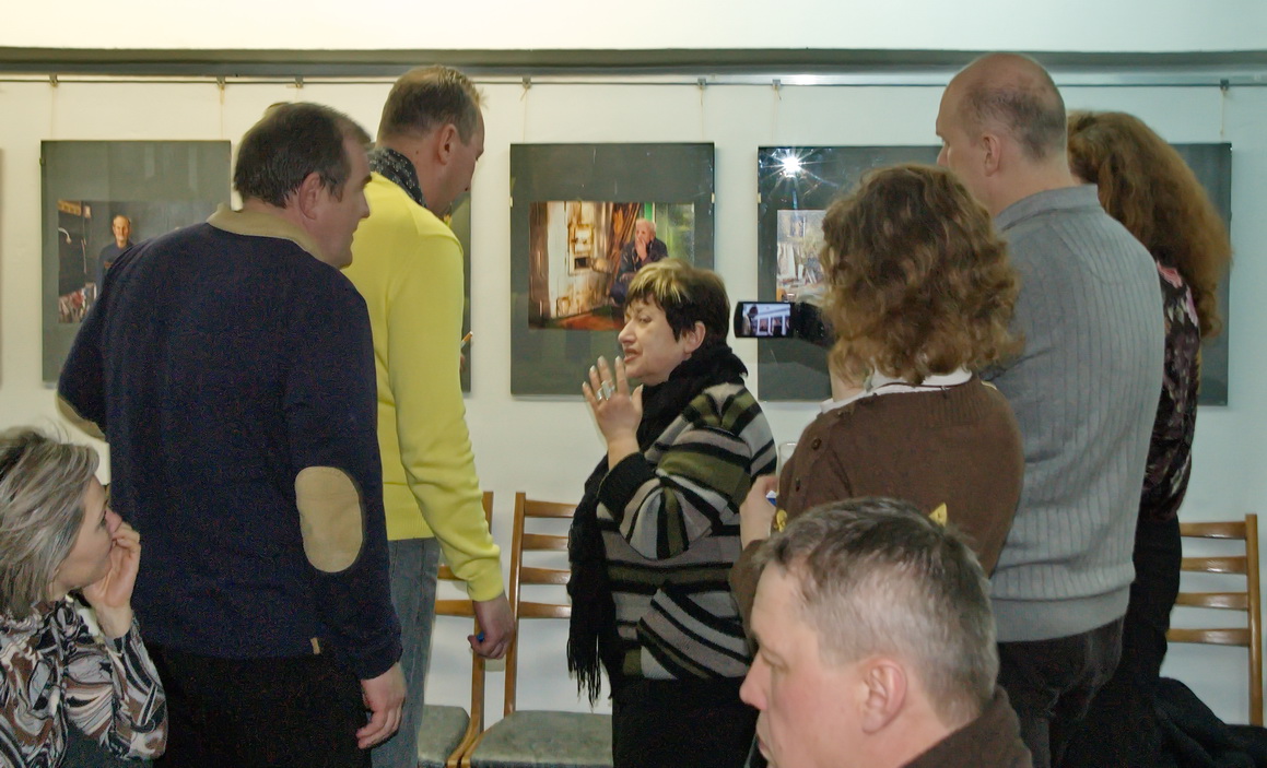 Позднее по времени (20-00) открытие выставки Альфреда МИКУСА «Дорогие мои старики…», плюс насыщенный фотособытиями вечер (мастер классы «Трагикомические истории в живописи, объеме и фотографии» от Альгиса Гришкявичюса и «Не разговоры о фотографии, а само изображение – вечная ценность» от Гитиса Скуджинскаса) органично и планомерно распределили волны постоянных (и впервые пришедших ) в галерею любителей фотографии по времени. Толчеи не наблюдалось, но количество заинтересованных зрителей, ознакомившихся с новым проектом Альфреда МИКУСА , оказалось значительным. Атмосфера конструктивного, заинтересованного обсуждения живого фотопроекта, имеющего все предпосылки вырасти в незаурядное фотографическое ( и не только) описание лиц уходящей эпохи, не отпускала пришедших почти до полуночи! Искренний интерес, профессиональные глубокие ценные замечания от Владимира БЛИНОВА, Виктора СЕДЫХА, Надежды Дегтярёвой, Ларисы ФИНКЕЛЬШТЕЙН,- просто бесценны! Да! Творческий союз корреспондента газеты «Пастаускi край» Инны СНЕЖКОВОЙ, которая прекрасно знакома с жизнью сельчан и к которой они относятся с полным доверием, плюс чувство кадра нашего коллеги, активного фотокорреспондента, члена НФК «МiНСК» Альфреда МИКУСА , оказался продуктивным и очень и очень своевременным. Повторюсь,- очень толковый проект!! Молодцы!!!
