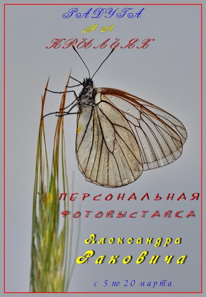 С 5 марта по 20 марта 2014, в Миске в "Доме кино" (Толбухина,18) представлена персональная выставка фотографий Александра Раковича "Радуга на крыльях". автор посвящает ее международному женскому дню "8 марта"