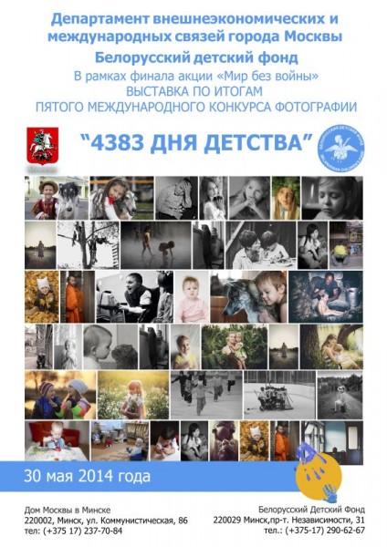 30 мая состоится презентация фотовыставки «4 383 дня детства» из числа работ победителей конкурса, 16 авторов из Беларуси, России, Украины.
