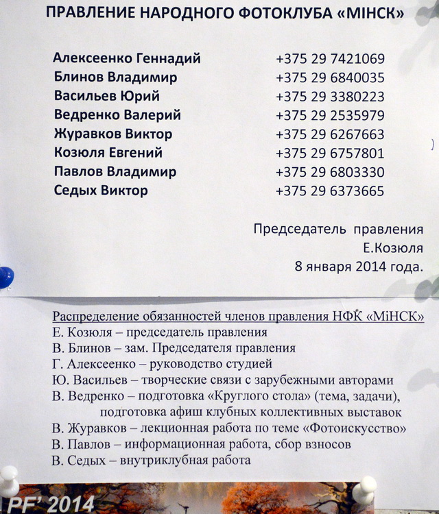 Отчёт о работе фотоклуба «Мiнск» за 2014 год.