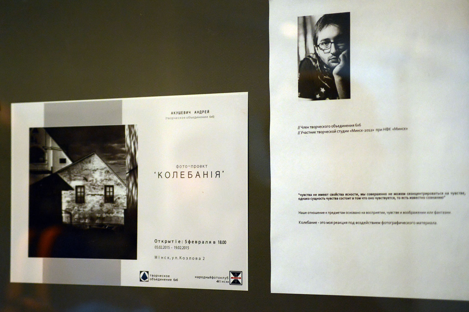 Данное мероприятие продолжает ряд вступительных выставок участников творческого объединения «6х6»,- участников студии «Мiнск-2012», в фотоклуб «МiНСК».