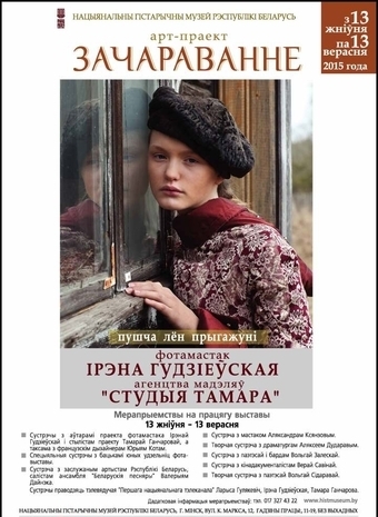 Я по поводу фотовыставки «Зачараванне» Ирины Гудзиевской в Национальном историческом музее Республики Беларусь. Стесненному в денежных средствах фотографу нет возможности сделать своей проект "на европейском" уровне с хорошо отпечатанными приглашениями, буклетом, каталогом, печатью снимков на дорогостоящем материале, если у него нет богатого спонсора. Мне сложно судить о художественной ценности выставленных снимков, в репортаже их не рассмотреть. Но если судить по афише, то на выставке представлены фотографии для гламурного журнала моды. Владимир, фотографии представляют ценность для истории БелФото?