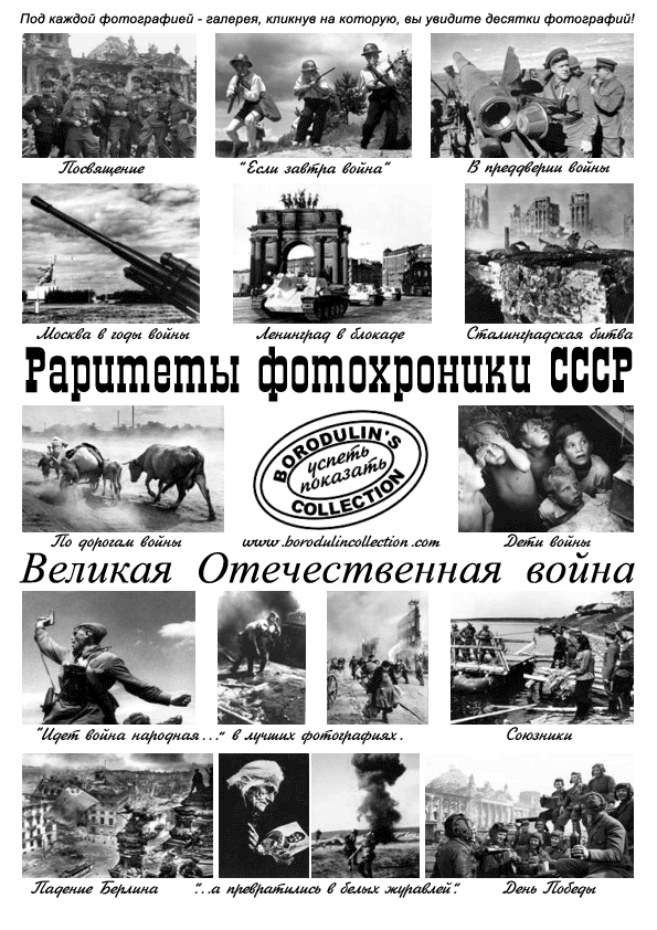 Коллекция семьи Бородулиных – одна из крупнейших и дорогостоящих в мире коллекций классической советской фотографии, в которую входят раритеты фотохроники СССР с 1917 по 1991 гг.. Авторы работ – признанные классики в мире фотоискусства, такие как Евгений Халдей, Макс Альперт, Дмитрий Бальтерманц, Анатолий Морозов и многие другие. Коллекция оценена мировыми аукционами Sothуbey’s и Bahnam’s.