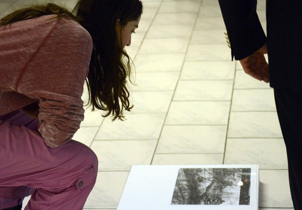 Концептуальный ручной фотопечатный проект Марины Батюковой «Возвращение» в правом зале Музея национального центра современного искусства, смело бросил на пол в ноги зрителям несколько отпечатков из проекта так, что неискушённые зрители безо всякого умысла невольно спотыкались, смещая квадраты прикрывающих стёкол. Думается, проектом не предполагалось чёткое рассматривание нижнего уровня экспозиции, - это определённо бы требовало неудобной позы для людей не со стопроцентным зрением. Но к чести организаторов, напольный нижний ярус был оперативно убран из центра экспозиции – ведь такой наплыв зрителей трудно было предвидеть.