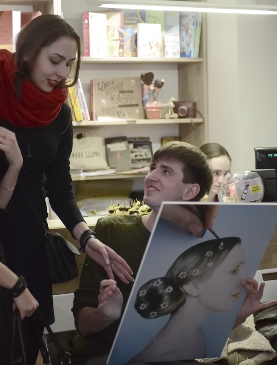 Ведь она могла называться и «Арт-дизайн...» и «Арт –макияж...» даже «Vogue ...» - и вероятно, «поисковик» прошёл бы мимо! А так, - оптимистичная яркая выставка молодого самобытного автора (любителя фотографии, выпускника химфака БГУ) в предверии дня 14 февраля задала соответствующее эмоциональное настроение в умном, добром, тёплом человечном пространстве «КНИЖНАЯ ШАФА».