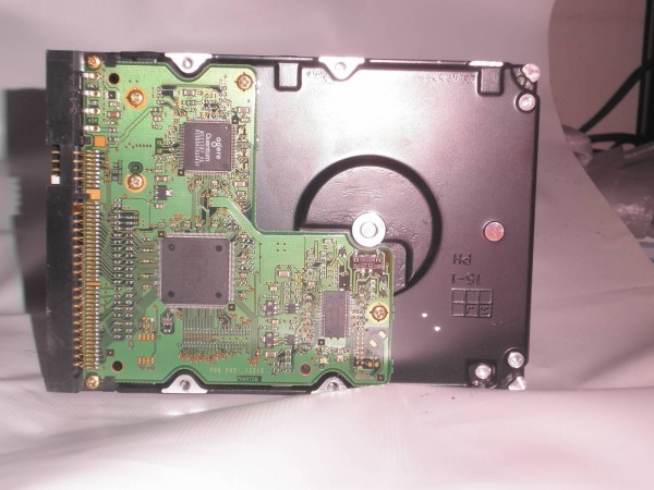 В отличие от предыдущего снимка, была добавлена фотовспышка с фотоаппарата. Четкость снимка существенно поменьше, то есть контурные области (плата, выступы) стали как бы слитные с остальными частями, цвета из-а света как я понимаю, стали более искусственными, все те же размытия у областей блестящих объектов, не четкие буквы в названиях микросхем.