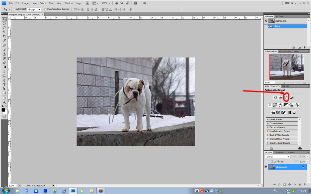 1. Выбираем функцию настройка кривых