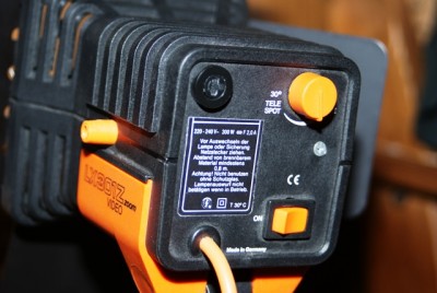 Судя по надписям на заднице, 300Вт. Во всяком случае 100 Вт лампу не проблема найти в электротоварах на данный патрон, а во 300Вт сложно будет отыскать