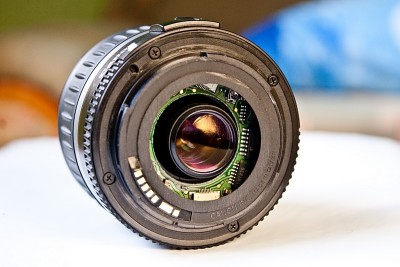 пришлось разбираться самому. итак нам надо снять байонетную площадку с объектива. она прикручена 4 торцевыми винтиками. сложность в том что к ней прикручена еще контактная группа, которая припаяна к микросхеме внутри объектива. винтики маленькие, находятся внутри одного из пазов сбоку объектива, прикручена 2 очень мелкими винтиками, я сразу не заметил их. после того как все выкручено байонетная площадка снимается легко.