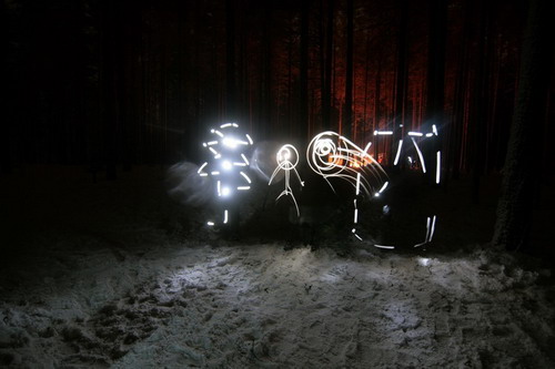Полностью понимаю как это делается, кроме одного, люди нарисовавшие этот рисунок , (скорее всего светящимися диодами), где они сами, всмысле почему/или как такое возможно что их Не видно??? Объясните.
