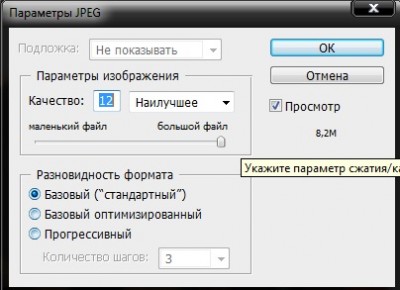 Вернее да, 12 - ти , ну вот такое окошечко: Вот тут как раз можно увеличить/уменьшить качество при этом видя сколько примерно он будет весеть.