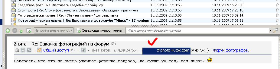 В РСС клиенте, на каждый пост можно видеть мыло автора.