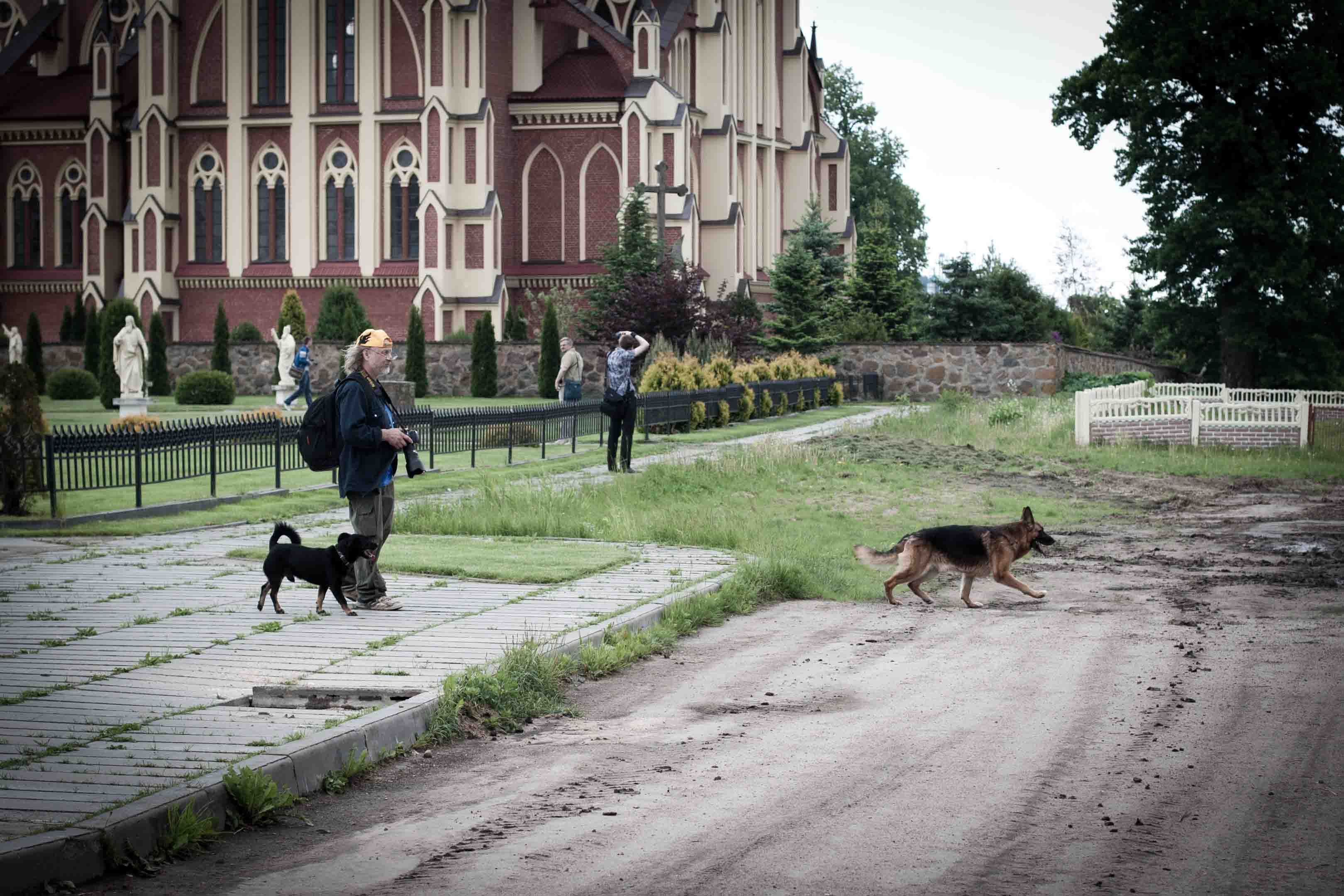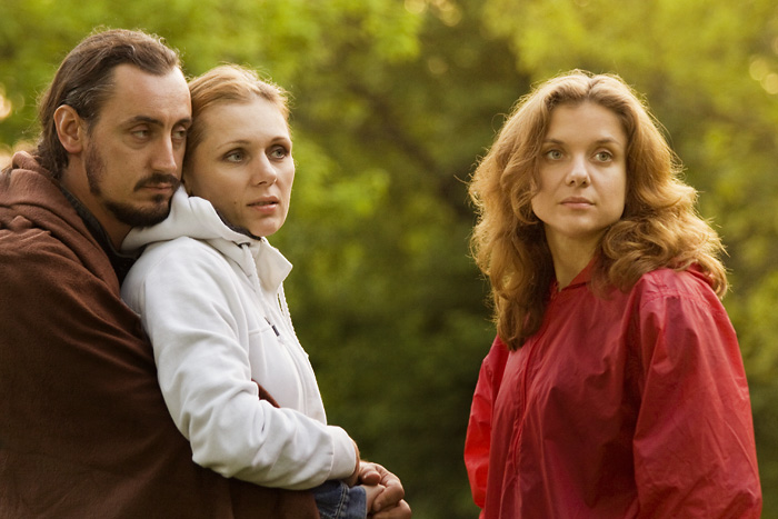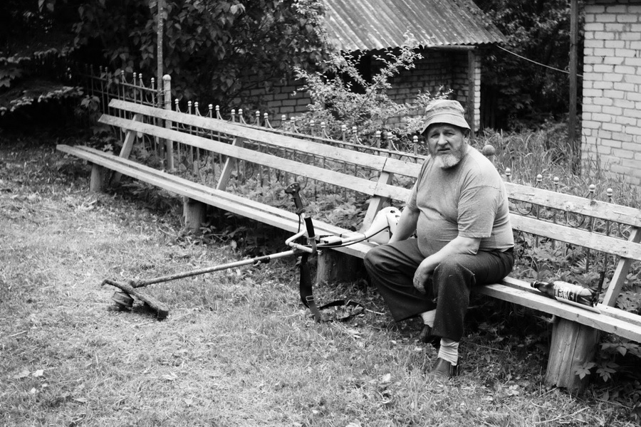 - батюшка, косящий траву вокруг церкви и матушка ее убирающая, рассказавшие о том, что прихожан не осталось, все разъехались или спились